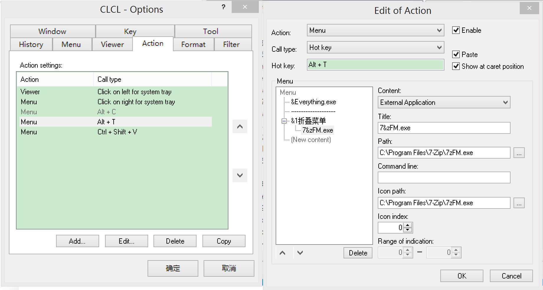 CLCL是个剪贴板增强工具,如果你还需要一个快速启动软件的话,CLCL可以兼职这一功能。 先说说最终效果 快捷键呼出(在鼠标指针位置),支持层级菜单,鼠标或键盘选中,全程键盘操作也可以; 支持多组快捷键,可以呼出不同的快捷菜单。 实现起来很简单,如图