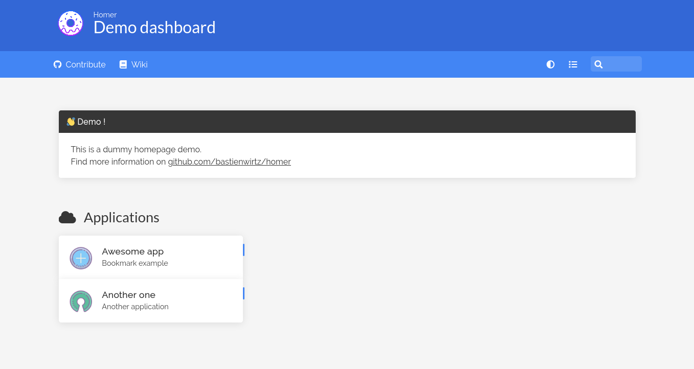 Homer 是一个开源的、基于Vue.js、webpack等前端技术栈编写的,自托管应用仪表盘导航页程序 (Dashboard),界面美观,支持绝大多数流行的自托管应用,类似于小众软件介绍的 Heimdall 。Homer 使用Webpack或Docker运行、用YAML文件配置,支持PWA、搜索应用、主题定制等特性。