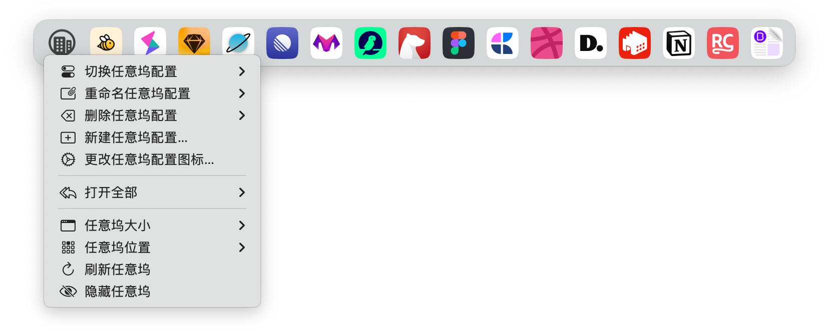 类似程序坞,浮动在桌面的书签栏,点击图标后即可打开链接。