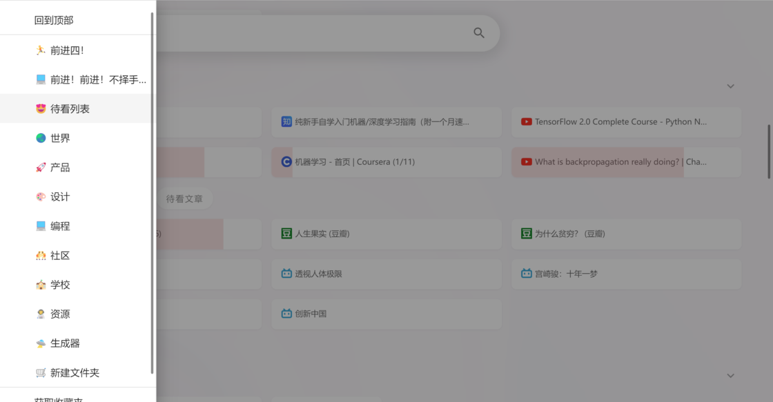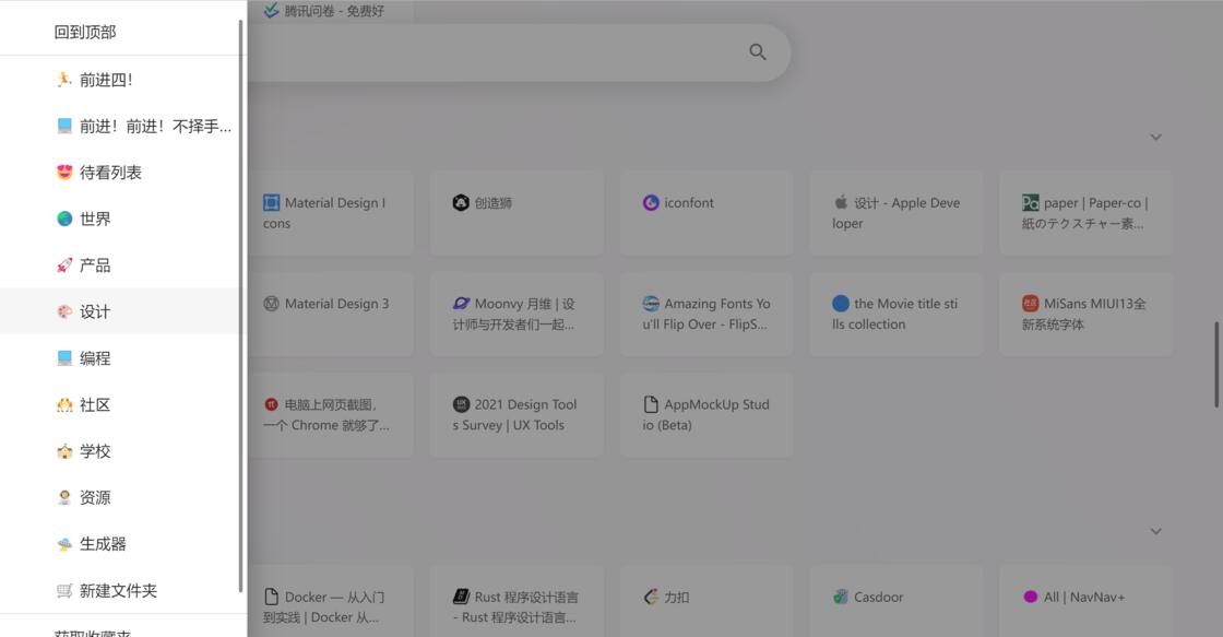 在收藏了许多内容并分好文件夹后,我们可以借助快速目录功能迅速的在我们关注的不同方面进行跳转。