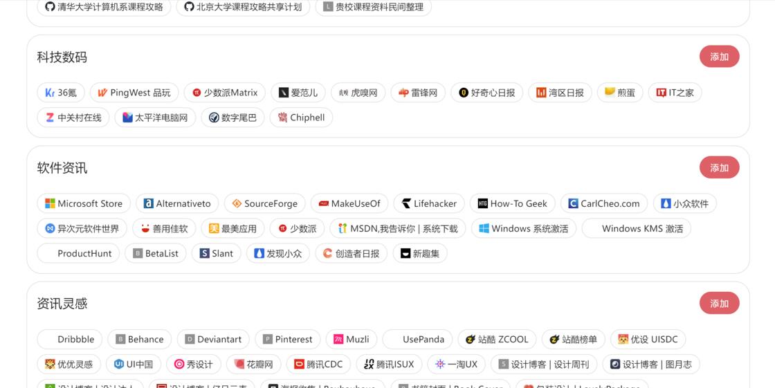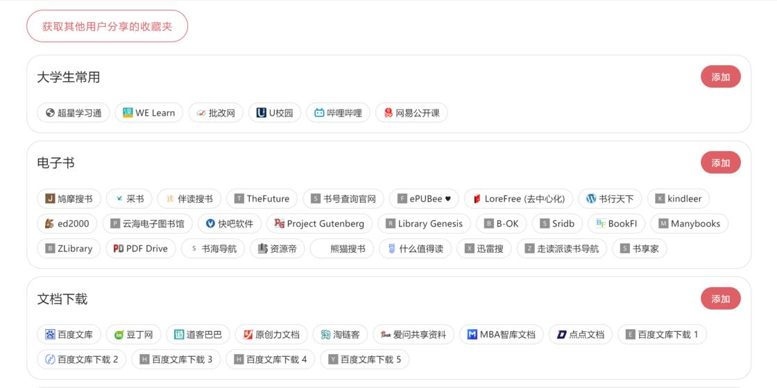 即使你的收藏夹空空如也,即使你还没有开始建立你的知识体系,这都没有关系。我们有热心的网友,他们将自己的收藏夹分享了出来,让大家不必苦苦寻找高质量网站。