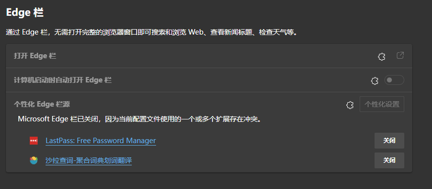 不过现在edge栏的兼容性不好. 打开一次关闭后, 已经不行了.