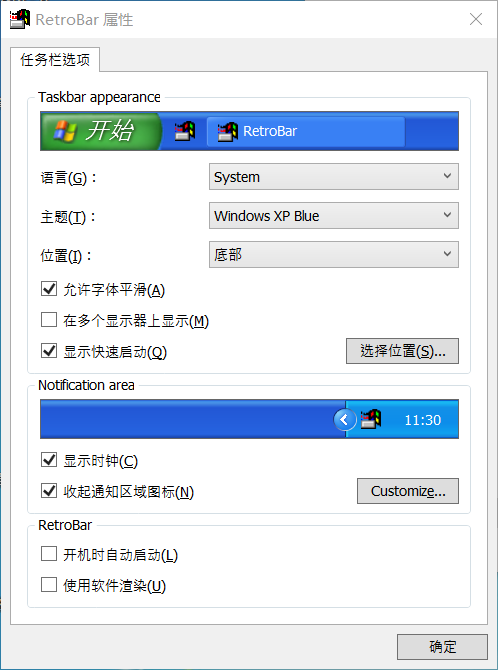 retro,意为“复古,怀旧”,顾名思义,RetroBar是一款能让你用经典的Windows 95、98、Me、2000或XP风格的任务栏替换现代Windows任务栏的小工具。