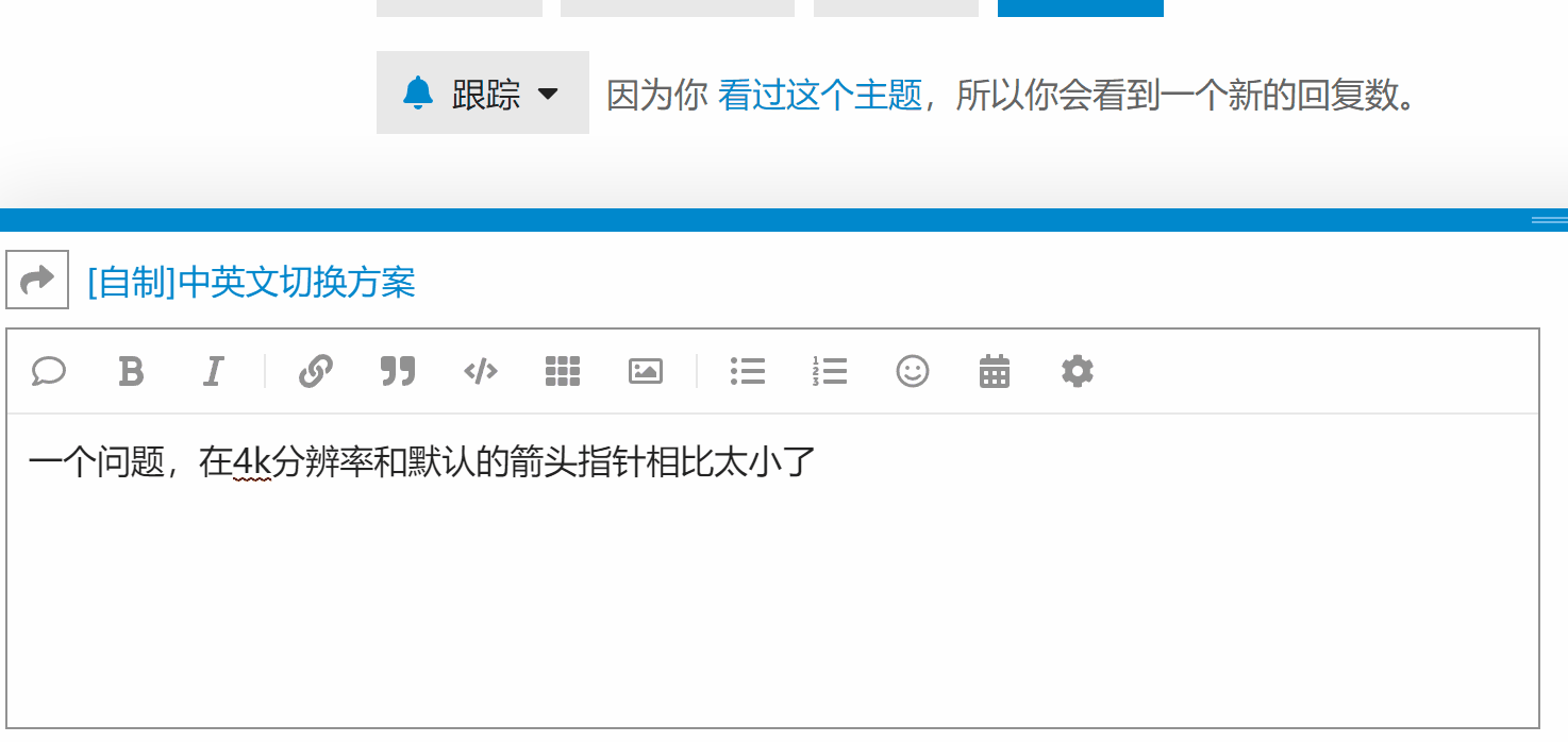 一个问题,在4k分辨率和默认的箭头指针相比太小了。