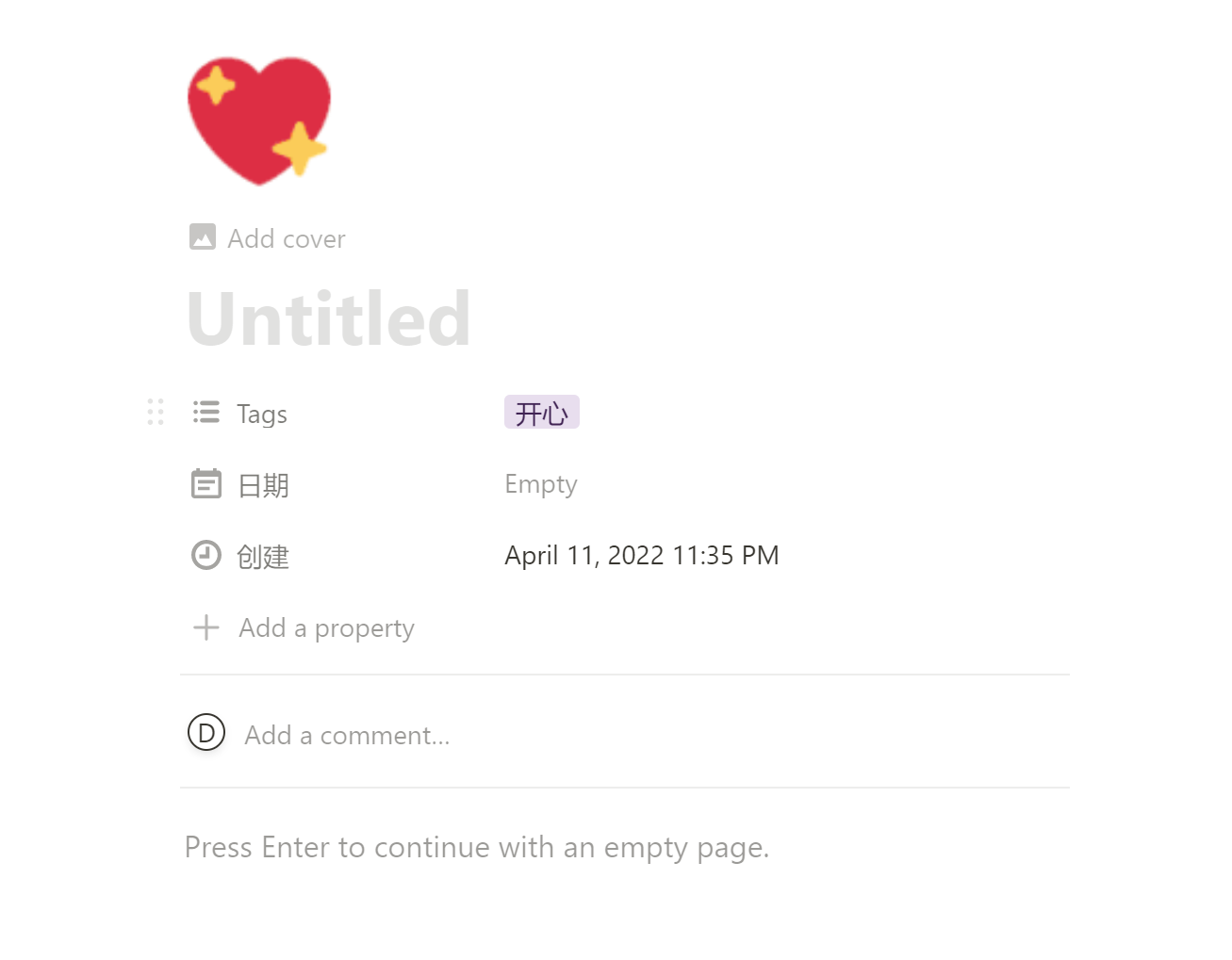 在这个 database 里建立模板,添加 icon 和 Tags。(试了一下,使用 Notion 的模板不会继承 title)