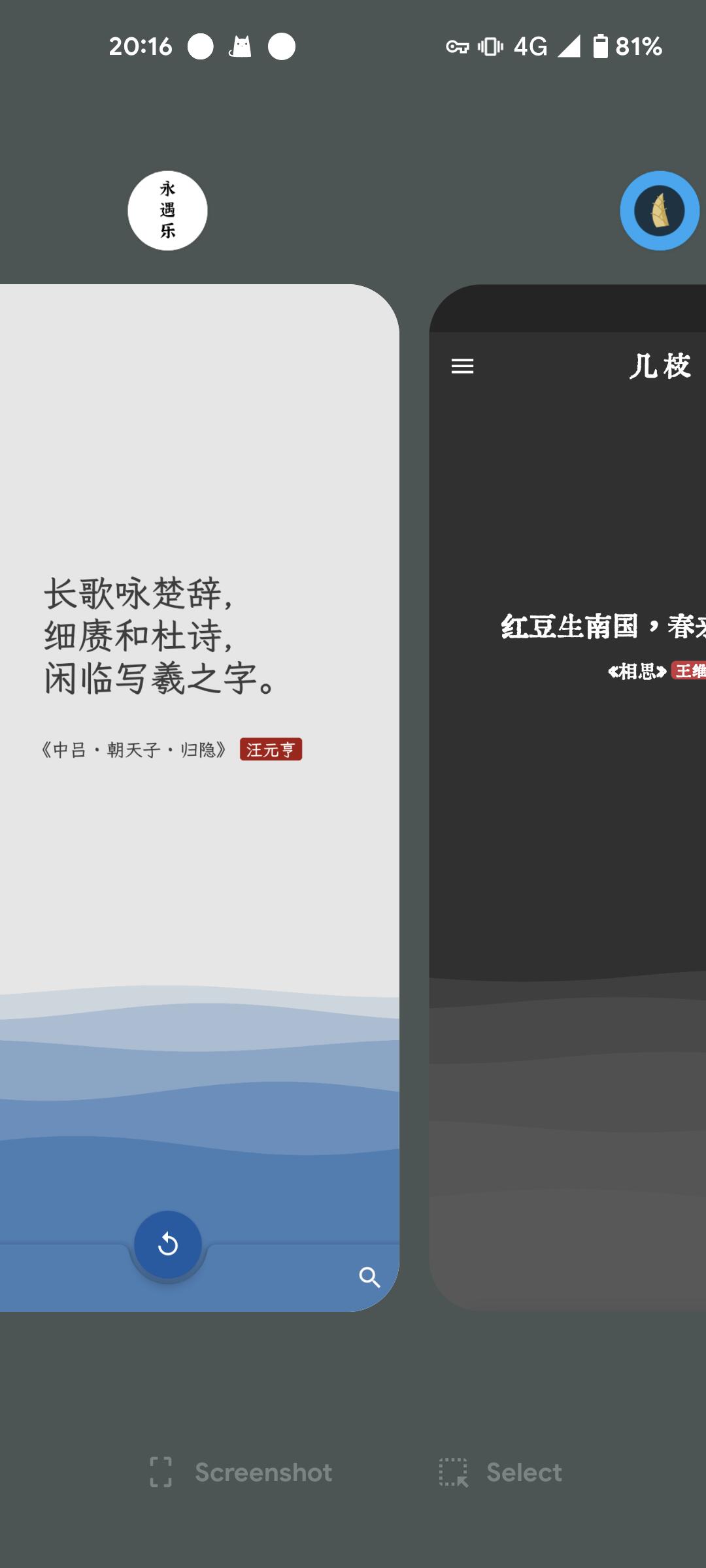 和几枝确实在ui上比较相像, 但也有自己的特点. 比如诗词搜索, 诗人搜索, 可检索诗人的所有诗词. 我觉得在功能上还是比几枝丰富的, 比较好的app.