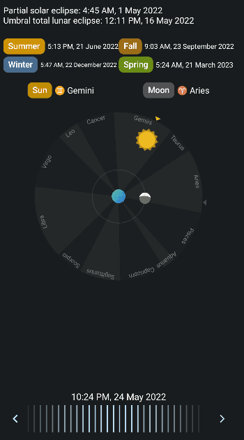 发现 Persian Calendar里面有个 很直观的地月日星座直观图,随着时间的推移而改变. 但融合在日历里了,这个日历是msl专用的,没有农历用着不习惯.请问有没有类似的应用?Android 或者windows都行