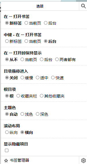 试了一下 这个也不是我想要的 这个是在扩展中打开是新标签页 在原生的书签栏中还是不行