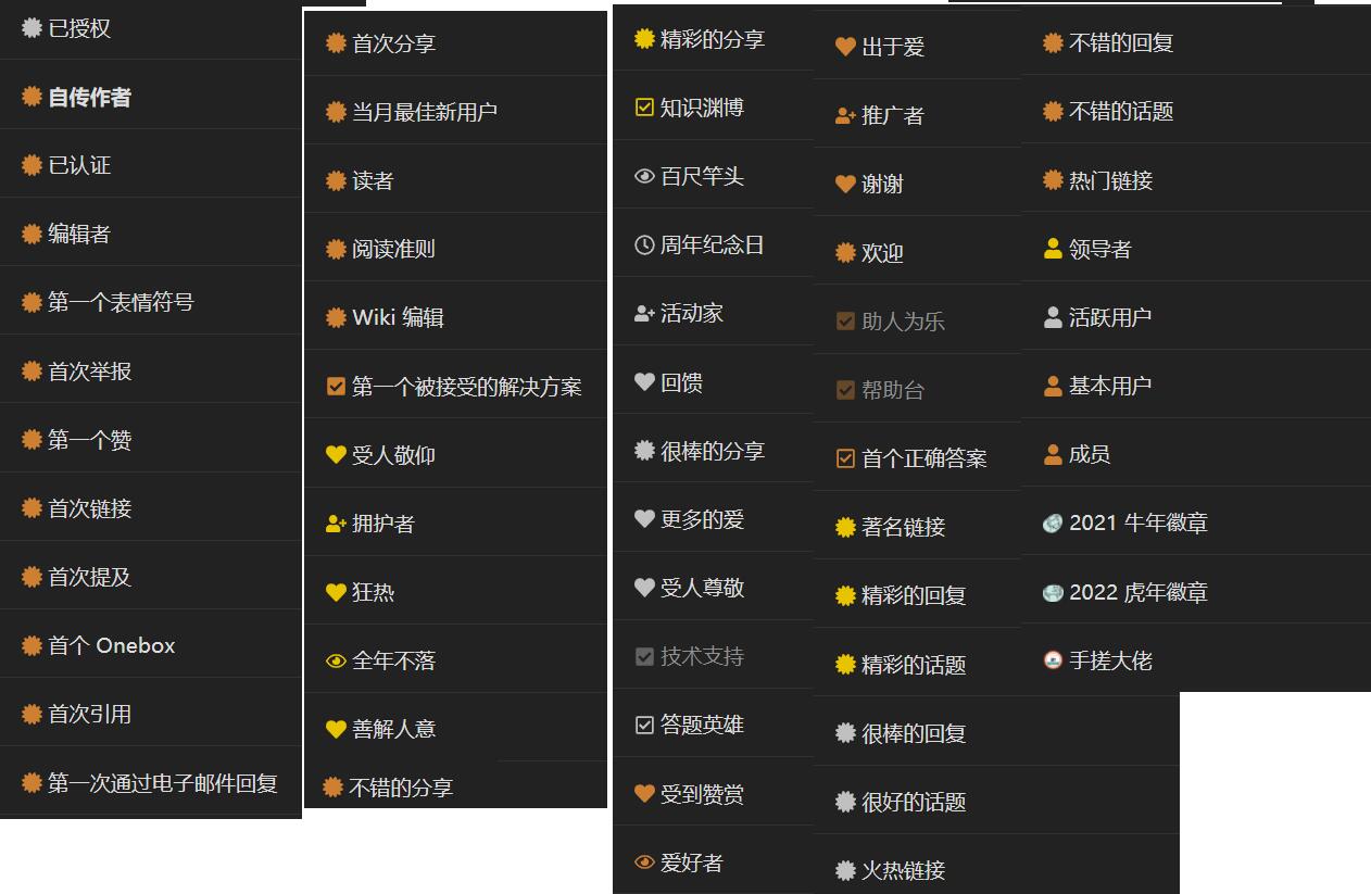 徽章图片为svg格式, 主贴png主要是演示, 结合评论意见, 废弃或修改了部分图标.