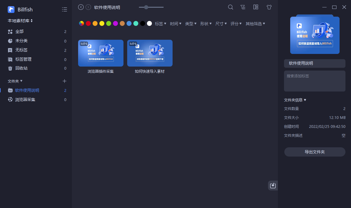 通过创建不同的文件夹可以将素材按照个人的使用习惯,分门别类的进行快速管理。