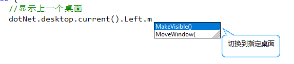 dotNet.desktop 对象才有 MakeVisible() 函数,输入的时候能看到智能提示: