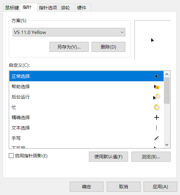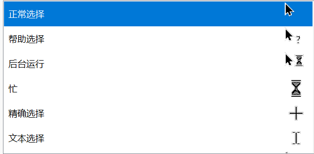 包括左手和右手光标、大号和小号光标……
