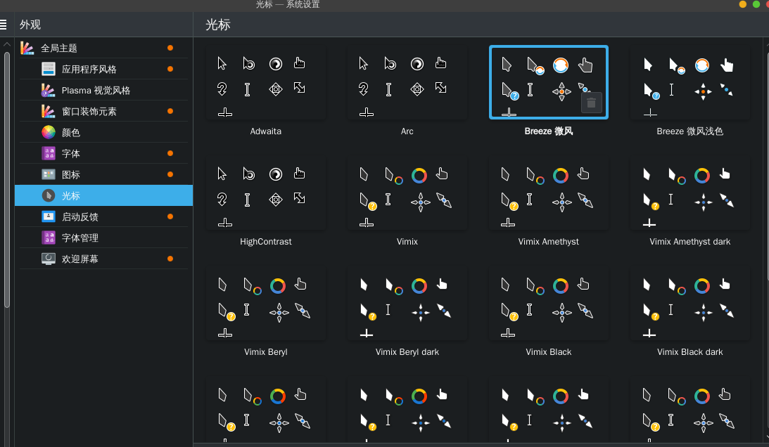 在KDE的主题仓库里,找到一款挺好的鼠标样式 Fuchsia