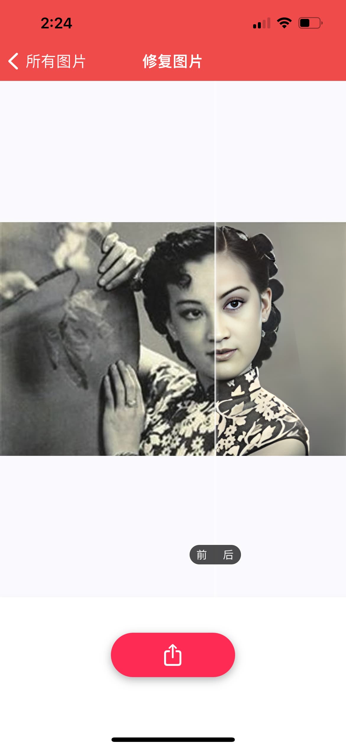 真免费, 没有套路, 不用砍一刀, 缺点就是功能还很简陋, 简单拍拍家里的老照片发个朋友圈什么的还是够用的, 效果见图: