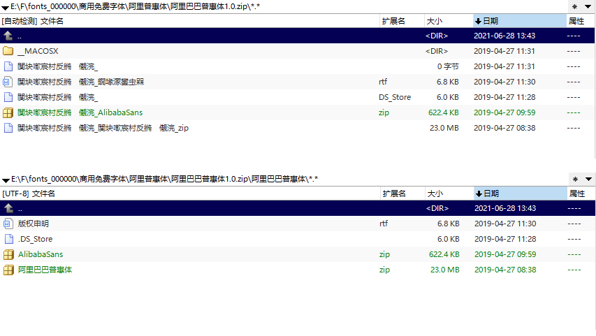 如果是win平台压缩包,不管是不是UTF-8,还是本地编码,都能正确识别。