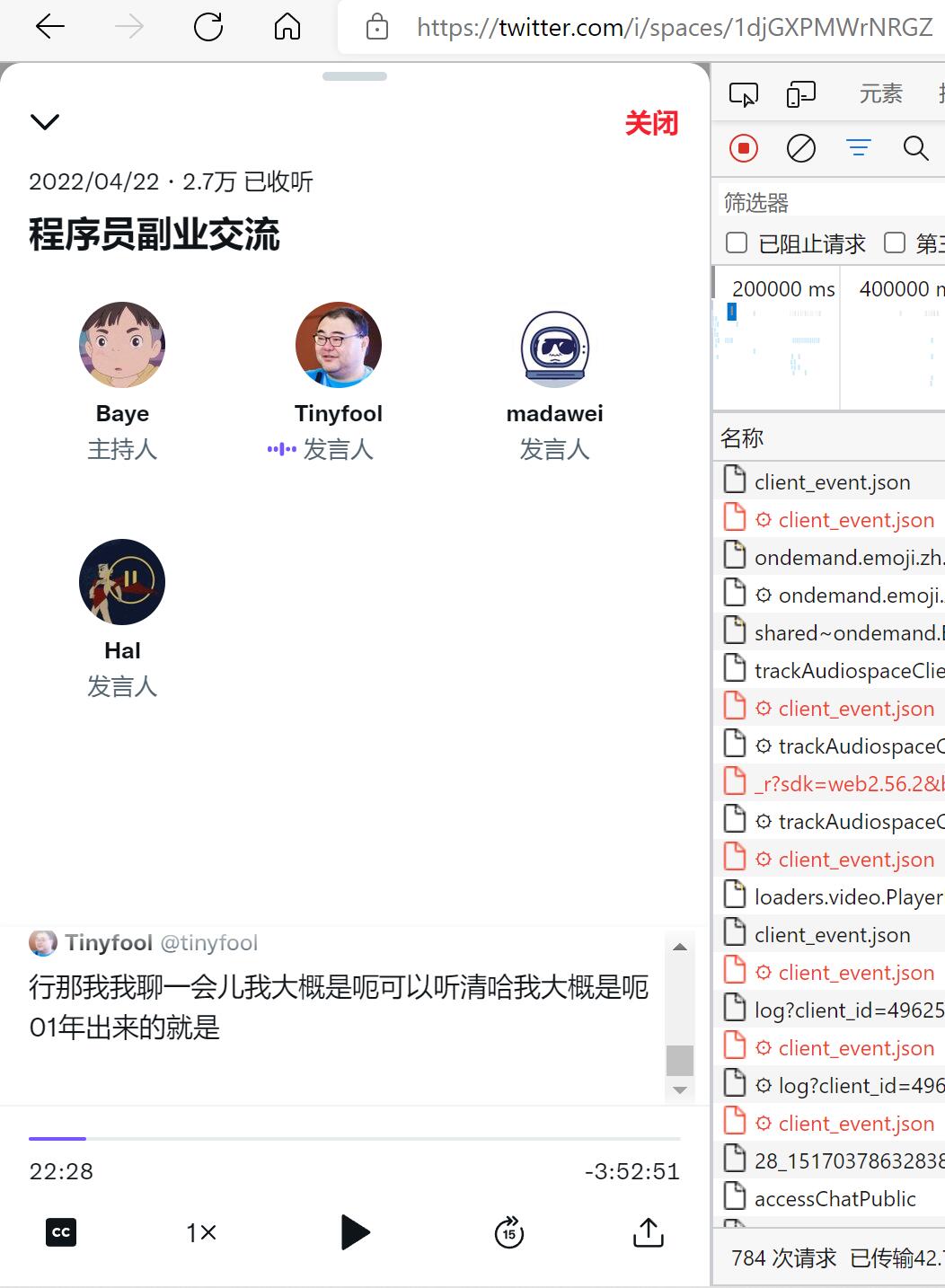 我已经把音频下载下来了。可是时间太长了,找不到合适的语音转文字平台。所以我想把推特自动识别的字幕下载下来。