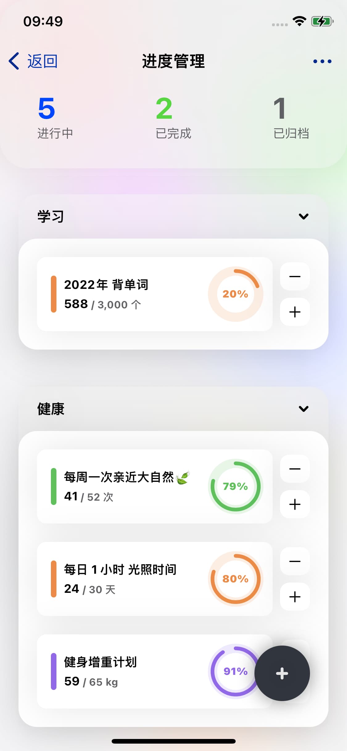 用于量化目标进度,支持分组、进度笔记等功能