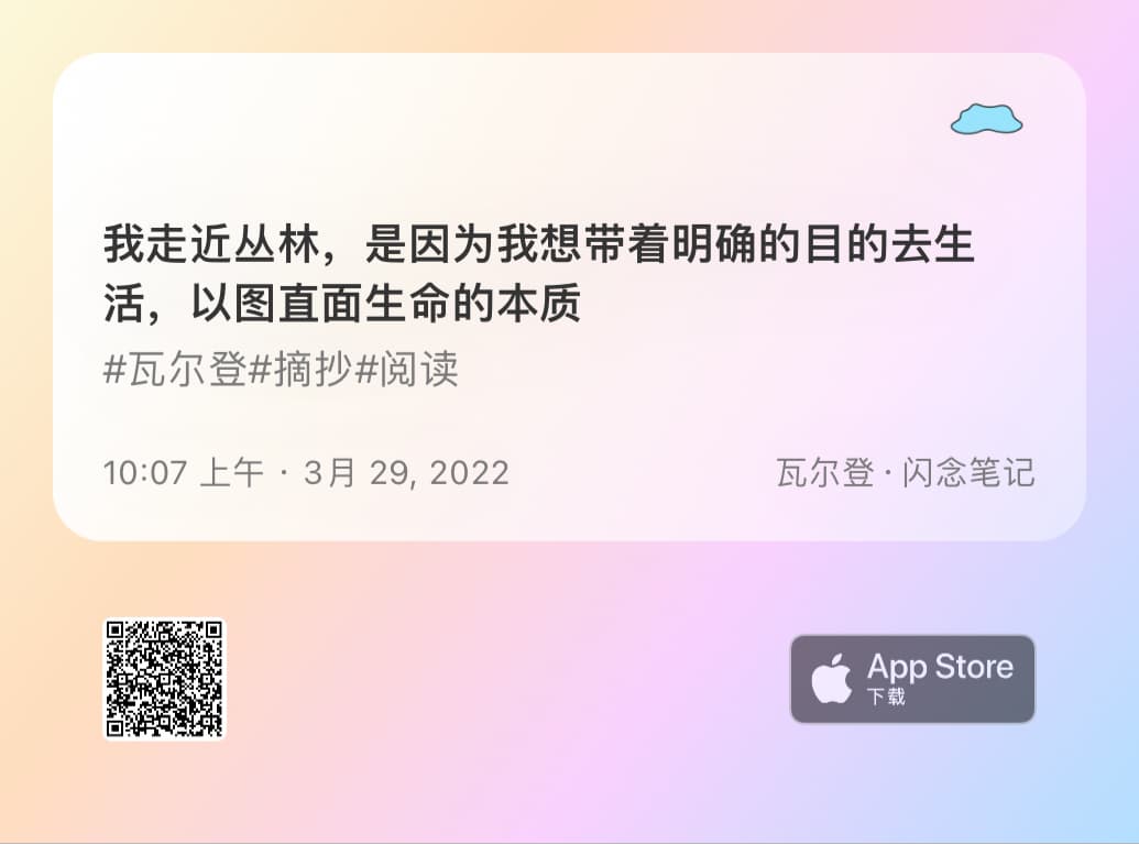随时记录想法,支持全文搜索、标签。支持导出数据,并且支持卡片分享形式,提供了多种精美设计的卡片样式。