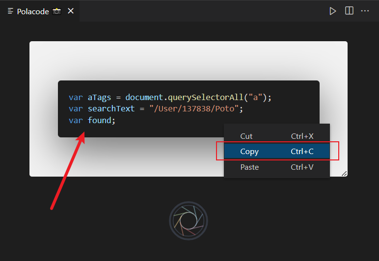 polacode 在效果图上右键复制,是复制代码片段。