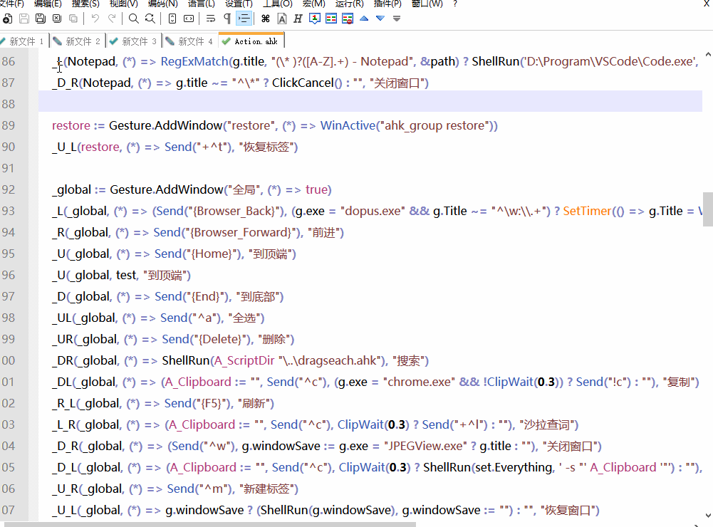 具体东西翻 Gestures.ahk 这一行下面的那些东西