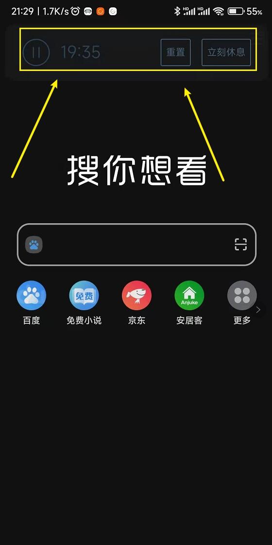 注:我目前手机app用的是这样一个提醒,(虽然有时候会挡住按钮),在顶部很大,超级显眼,让自己随时注意娱乐时间不要超时。如果按照朋友你的脚本,那个时间框好小我完全没注意到 :joy: :joy: