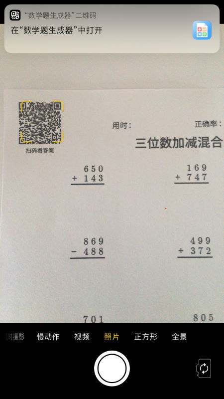 - 生成的练习题可以预览,支持手势缩放,可以一键显示答案