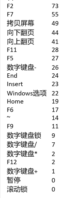 一下的按键排在百位左右, 按了70万次按键,截屏上下翻页的次数都没超过50次