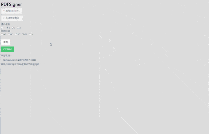 「PDFSigner」是一款在线工具,可以在网页直接打开pdf文件,用户加盖签章图片文件后,直接导出PDF文件,省去转换格式的麻烦。