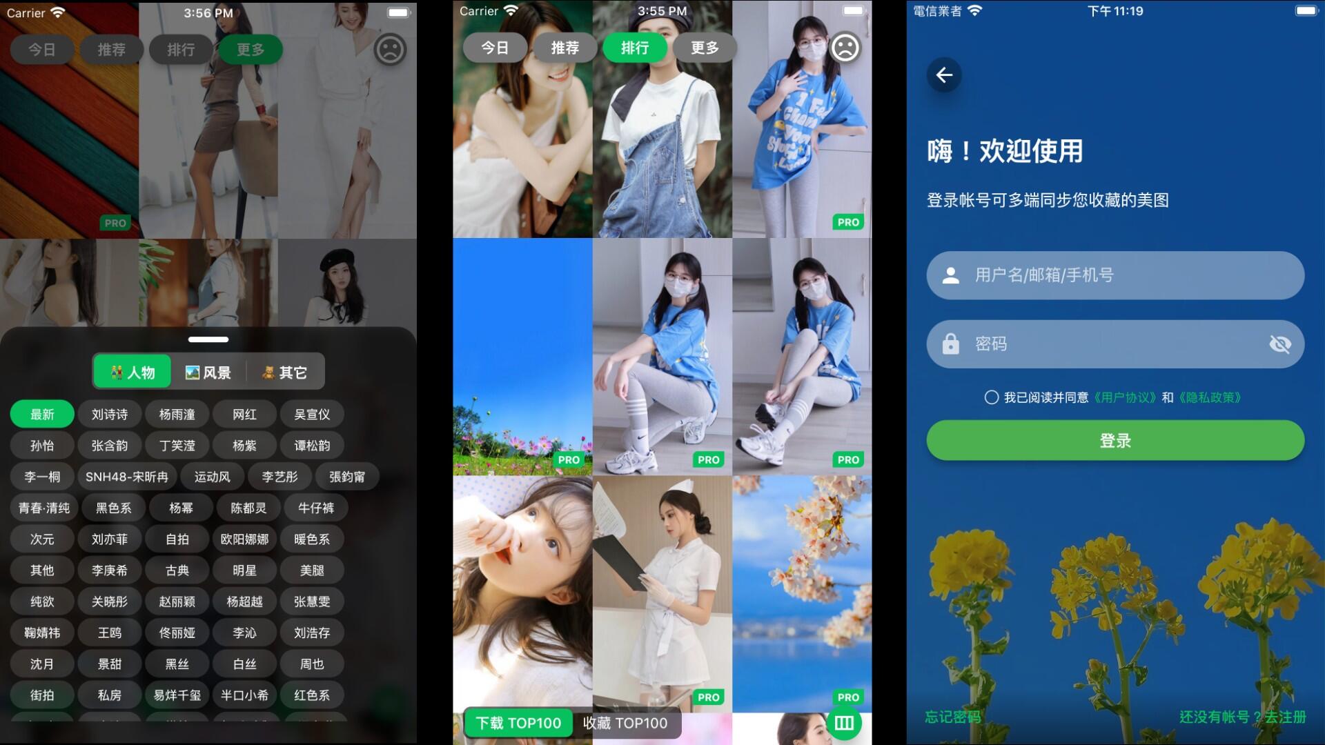 - 分类标签:所有分类和合集美图随心筛选,目前有美女、帅哥、风景、静物等。