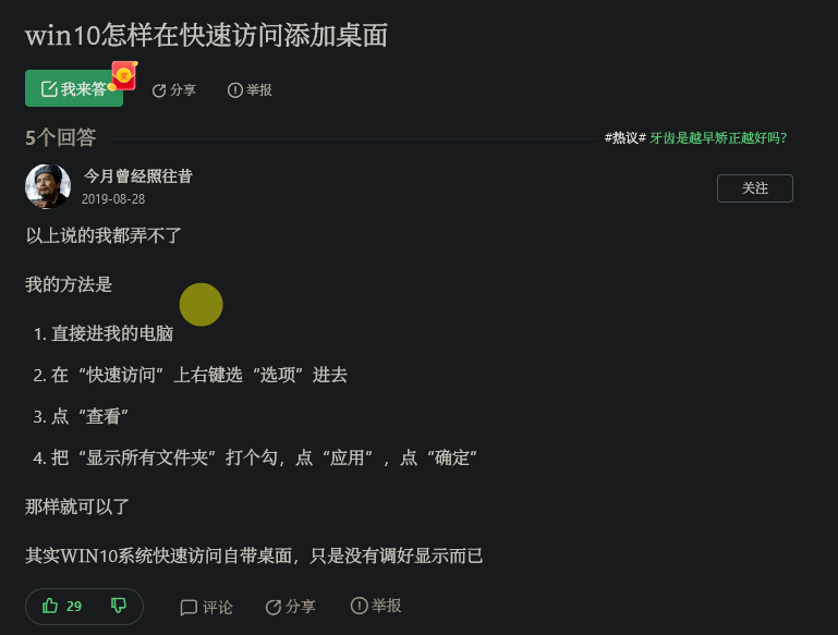 你试试把桌面文件夹直接拖过去拖到快速访问?