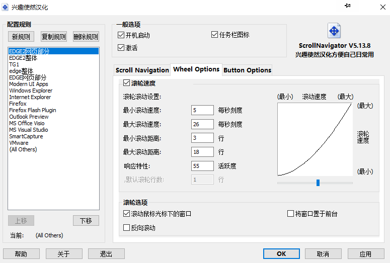 一直用的 ScrollNavigator DeskSoft - ScrollNavigator - Window scrolling helper 这个鼠标滚轮增强 虽然没有一滚千行但是可以通过滚动的快慢来调节最高滚动速度 默认就是一滚 用了4 5年现在是装机开机启动必备 不运行这个 就感觉滚轮很别扭