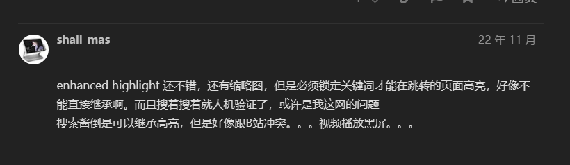 观察结果:最近的几个版本加载时间都比较长,我现在回退到 1.6.6.54.23 版本,有所改善,但仍然比禁用搜索酱后的加载时间长。也许这是脚本的工作原理导致的必然结果?