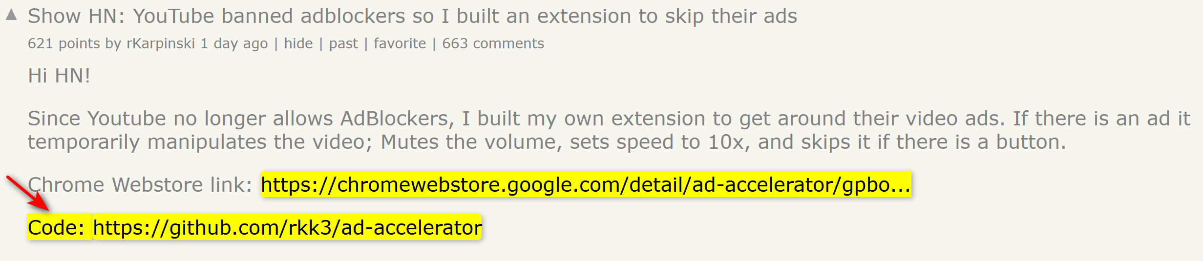 以 Show HN: YouTube banned adblockers so I built an extension to skip their ads | Hacker News 为例,该规则会高亮不该高亮的部分比如某些单词如下图: