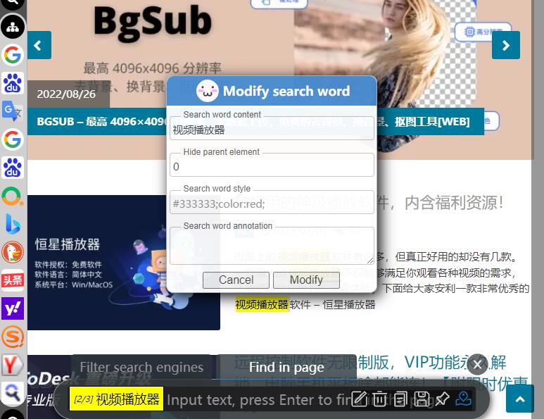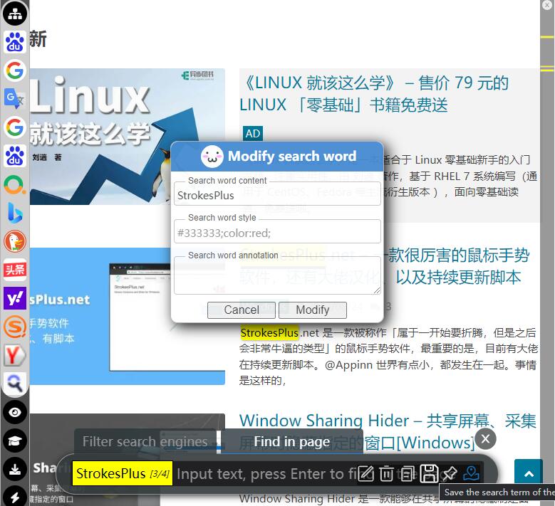 添加了双击页内搜索词弹出修改窗口的功能,以及一键保存当前高亮方案的功能,方便我做一些简单的笔记。