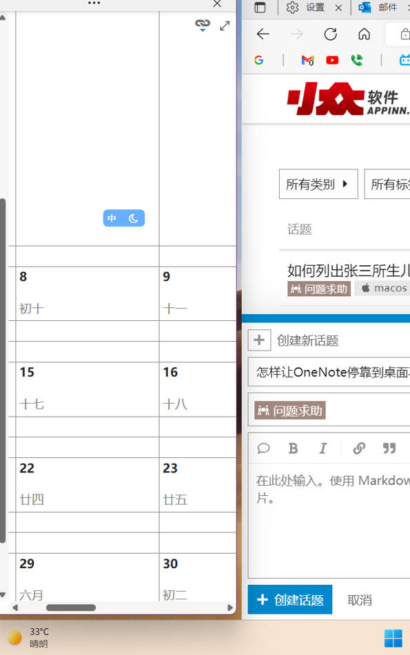 怎样让OneNote停靠到桌面不置顶呢