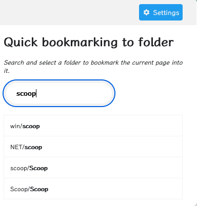但最好的是另一个功能,点addon本身图标能直接弹出搜索框搜文件夹名,从此复杂的多层书签也没关系了