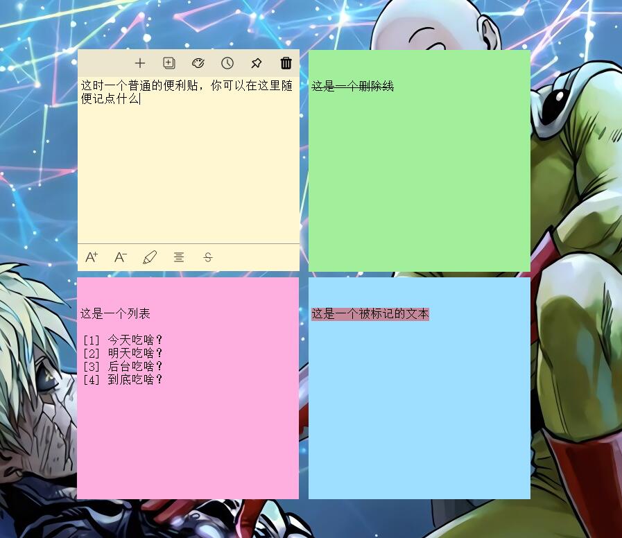 老实说Windows自带的便笺还挺好用的,但是已经很久不更新了,都2022了都还不能置顶到屏幕上,很难受。而且部分富文本功能也很不友好,所以决定自己撸一个。