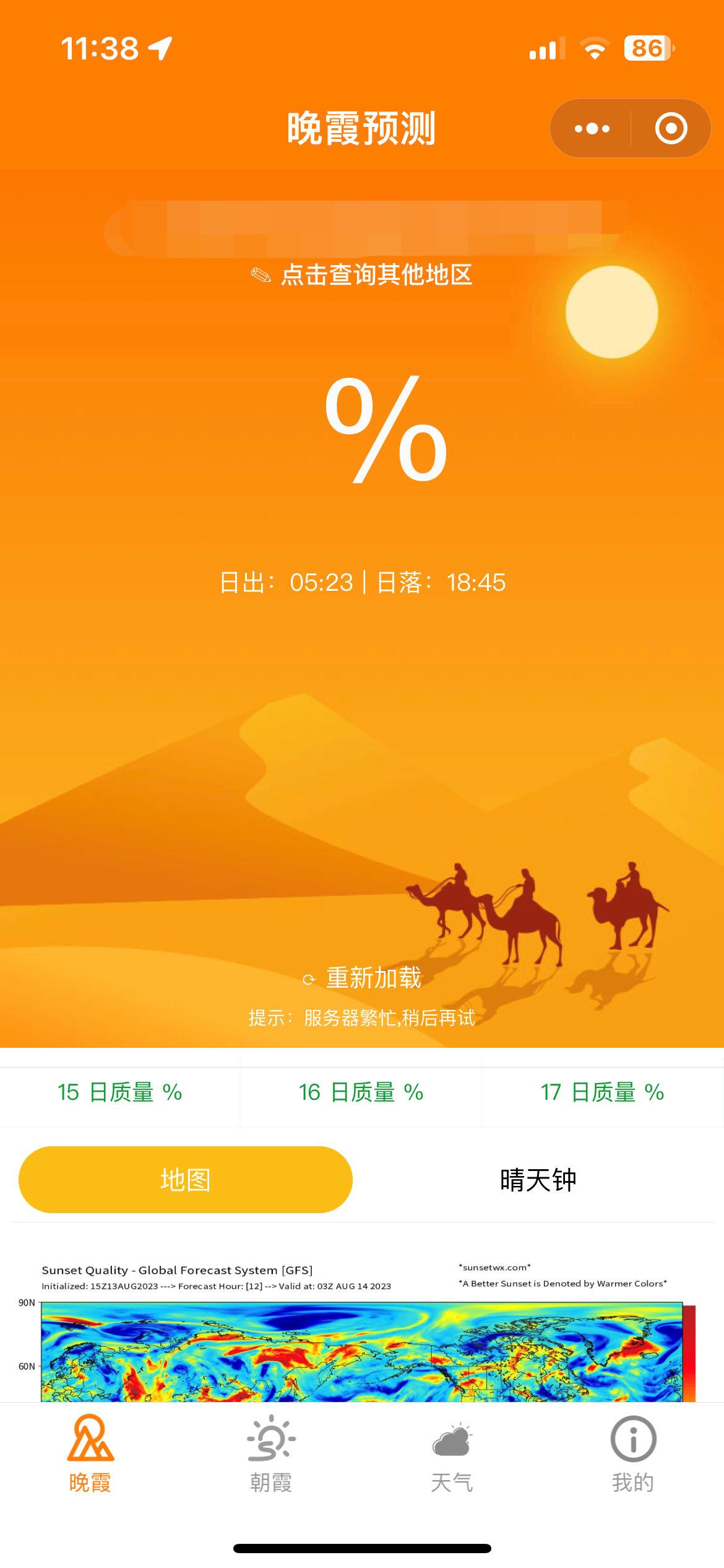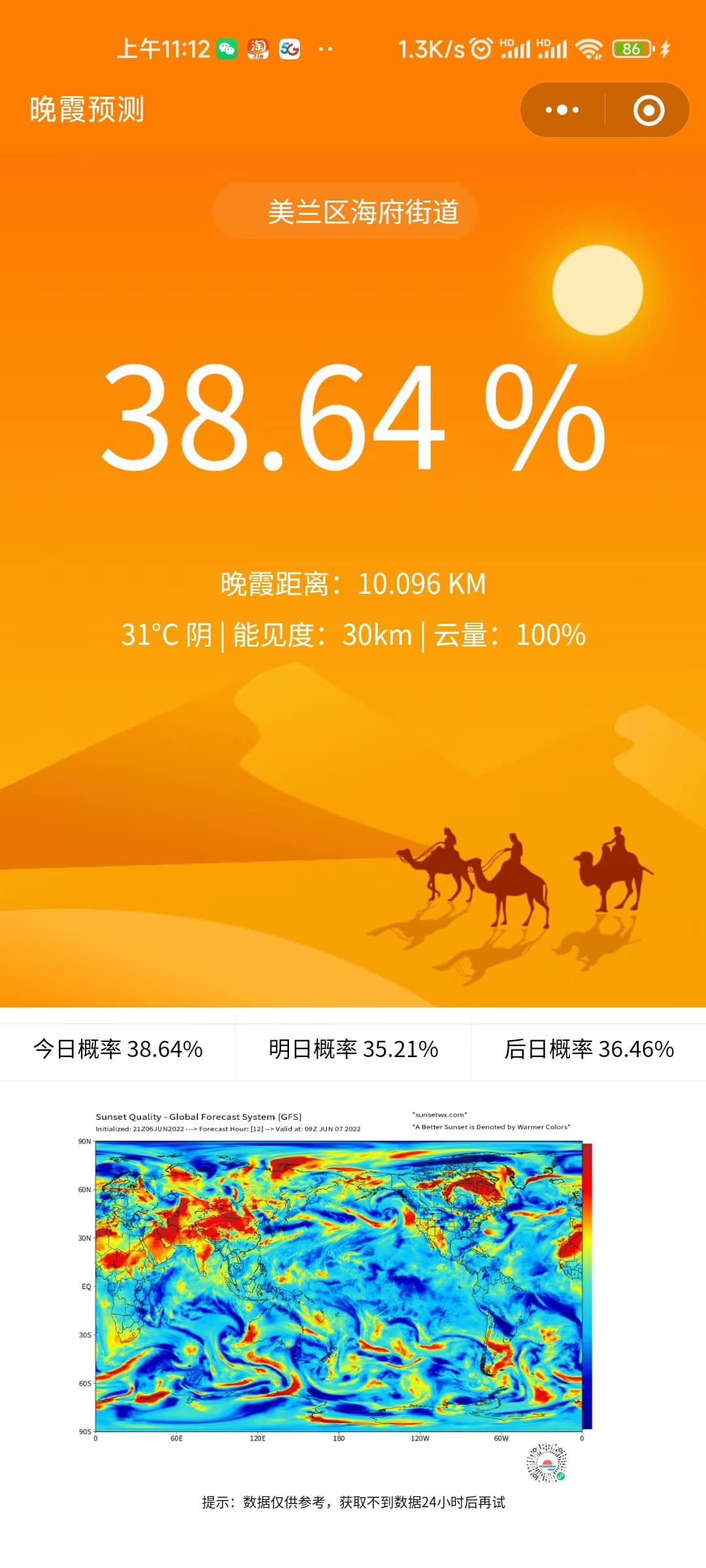 据了解目前做晚霞预测的“莉景天气”准确率也相对比较高;不仅有云海、彩虹、月相、观星、日出、日落、月初、月落等预测服务,准确率还是挺高的。但是非会员的只能查看当天的预测结果,我就想着自己开发一个来使用。