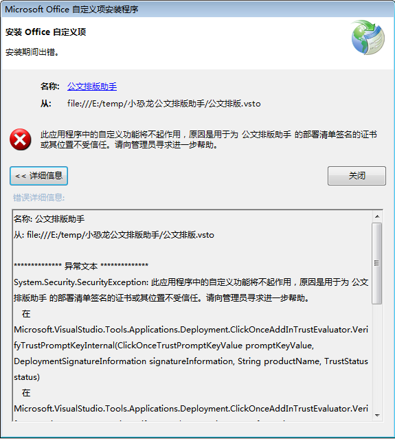 提示:Office2007推荐安装1083版本, 而且2007如果无法成功加载插件,可能是因为office2007自身的bug导致的,请参考微软官网的这篇文件解决. 另外我吐槽一句:Office2007作为首个Ribbon的Office,不仅功能缺失,而且Bug非常多,建议升级到2013版本.
