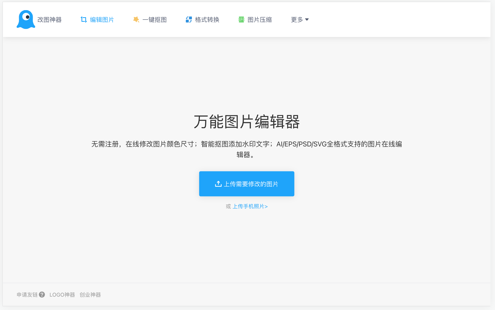 「改图神器」是一款万能图片在线编辑器。AI/EPS/PSD/SVG全格式支持,超简单,无登录