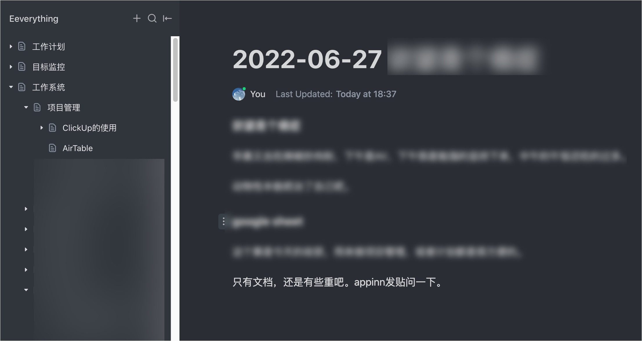 clickup与notion,我都觉得写字体验都不错,有一种愉悦感。但之所以用clickup替代notion,是因为clickup的docs的文档树更好,子级的结构呈现很清晰。