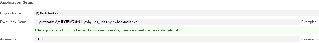Executable Name使用歪脖快打文件夹中的newbookmark.exe全路径