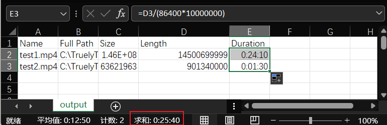 Excel 打开 output.csv,删掉前两行,然后新建一个列,将 Length 里按照 100ns 单位的时间转换为秒数或 Excel 内部时间表示。