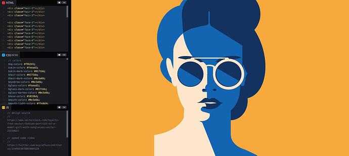 - 用 CSS 绘制戴墨镜的女孩 - 代码的艺术。代码在这里。