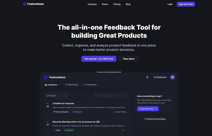 - Featurebase - 这是一个收集用户反馈 Feedback 的项目。之前有推荐过 Cubox 和 Framer 也在用的 Canny ,但是 Canny 太贵了。这个独立产品 Featurebase 一年 $385,还不错。