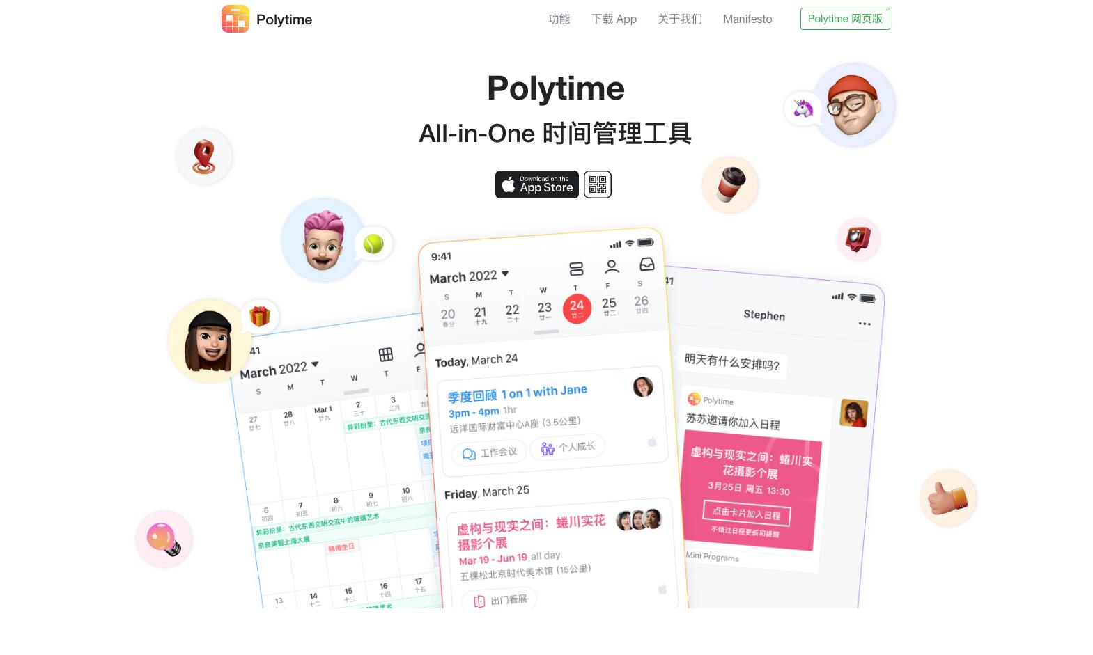 - Polytime - 这是本周刊的付费订阅用户做的项目。All-in-One 时间管理工具,兼容 Web,有浏览器就能用,在大屏幕上也能管理时间。这个产品还可以通过小程序卡片直接邀请微信好友加入日程,当日程即将开始,他们会在微信中收到日程提醒。还有奇趣日程,星座运势、体育赛事、电竞直播、新品发布会、热门剧更新等。更多介绍可以在少数派的这篇文章看看介绍。