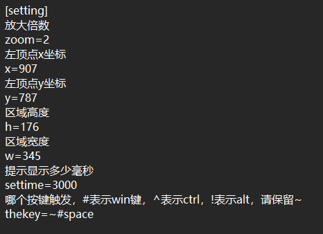 于是我用autohotkey写了一个,这个小工具的作用非常简单,当你按下某个按键时,屏幕中央会放大显示你预先设定的区域,放大倍数想多大就多大。