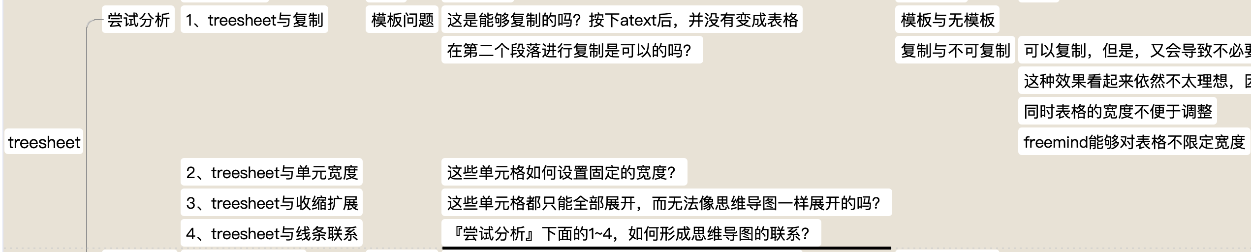我喜欢用表格做分析,最后又将表格分析的内容,通过思维导图来整理,但是treesheets的设计与操作,好像无法实现吧