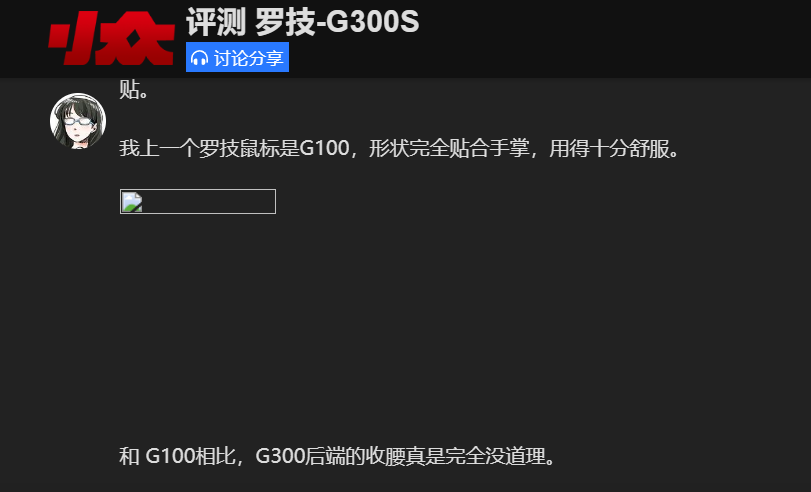 我从事的工作需要绘图,本身是对鼠标的延迟和精确度很在意的用户,用 G304 很长时间了,觉得是个好鼠标,看到你习惯了 G100 的形状,这不是正好和 G304 造型类似吗?就推荐了一下。