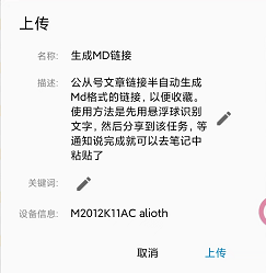 - 获取文章名:这个暂时没想到怎么弄,所以是用悬浮球截图OCR识别,然后分享到该任务。